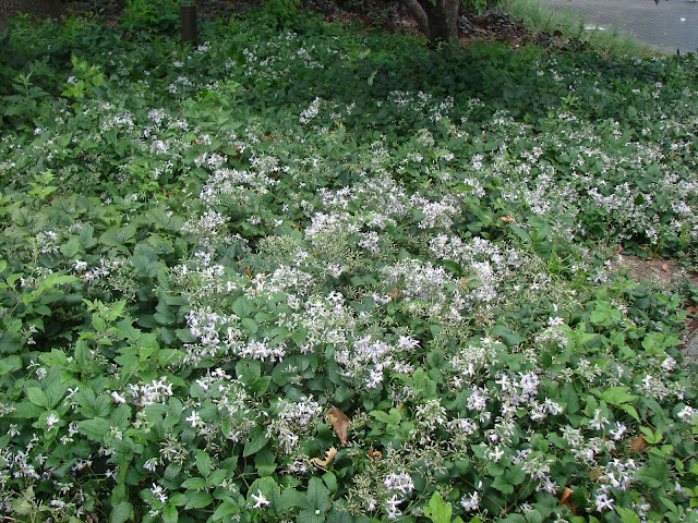 And last a groundcover, a low blanket on the earth, used next to some of the tallest perennials in the garden, Clematis x jouiniana 'Praecox'.